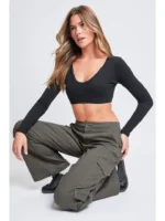 3 reviews for High Rise Double Pocket Wide Leg Cargo Pants / Olive
