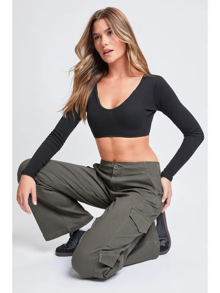 Discover endless styling possibilities with these uber-trendy Juniors High Rise Double Pocket Wide Leg Cargo Pants!
