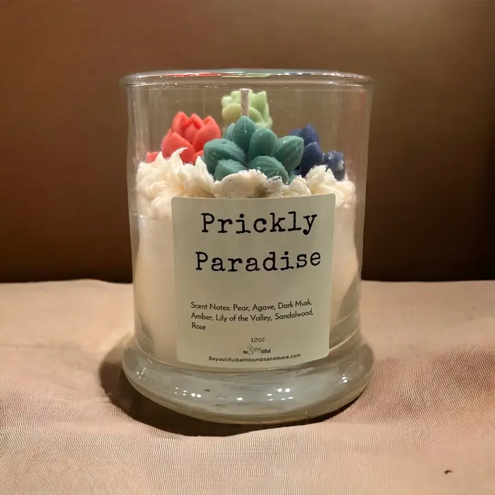 Introducing our captivating Prickly Paradise candle, where the rugged allure of the desert meet the lush oasis!