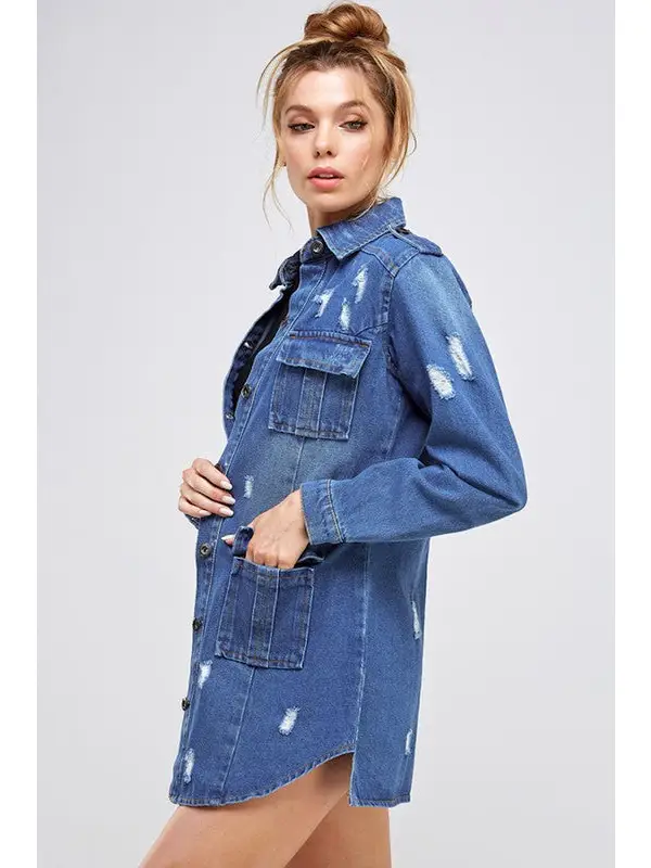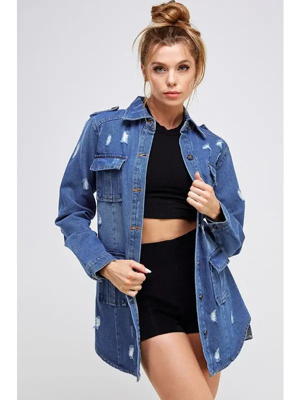 Machine Wash Blue Age long Denim Jacket,it’s longer length makes it easy to pair with just about anything.