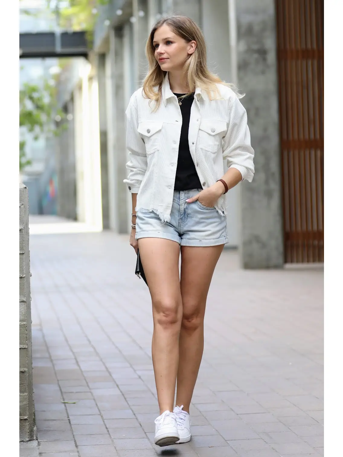 Sarita Distressed Corduroy Frayed Hem Cropped Jacket / Ivory