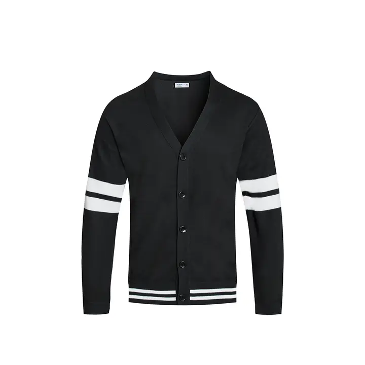 Love this black knit cardigan! The two stripe design gives it a cool touch,