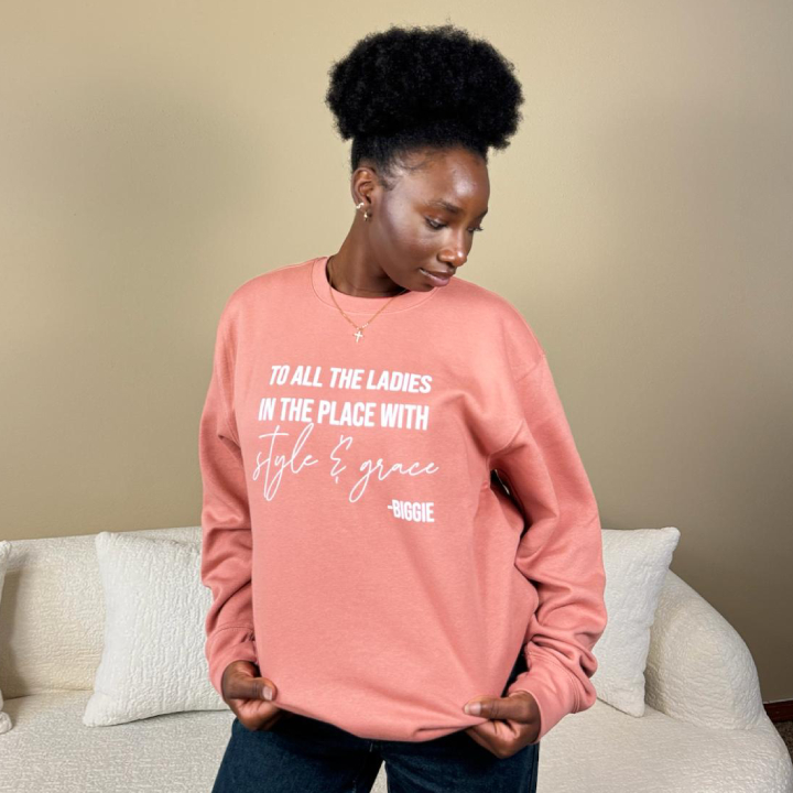 To All the Ladies in the Place with Style & Grace, Unisex Crewneck Fleece Sweatshirts / D Rose/White